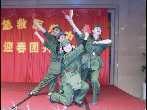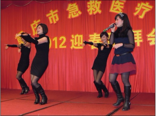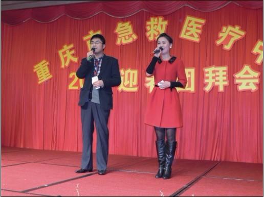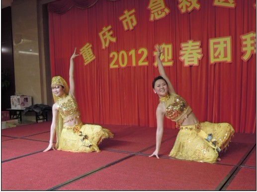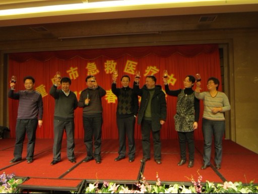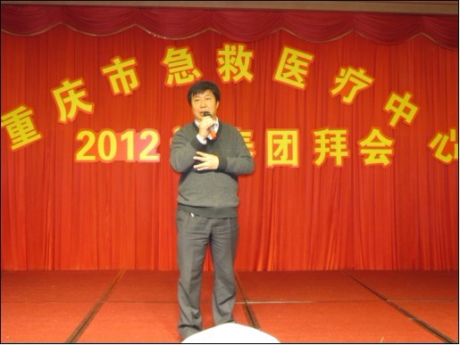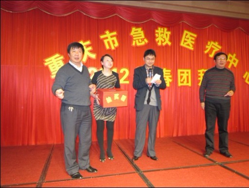 重庆市急救医疗中心2012迎春团拜会花絮 2012-01-22 主持人激情开场史院长致新年贺词 全体院领导举杯祝酒 团拜会现场 劲歌热舞hold住全场 史院长与退休院领导深情讲话 大奖呼之欲出 热情洋溢的印度舞激情演绎——大海航行靠舵手