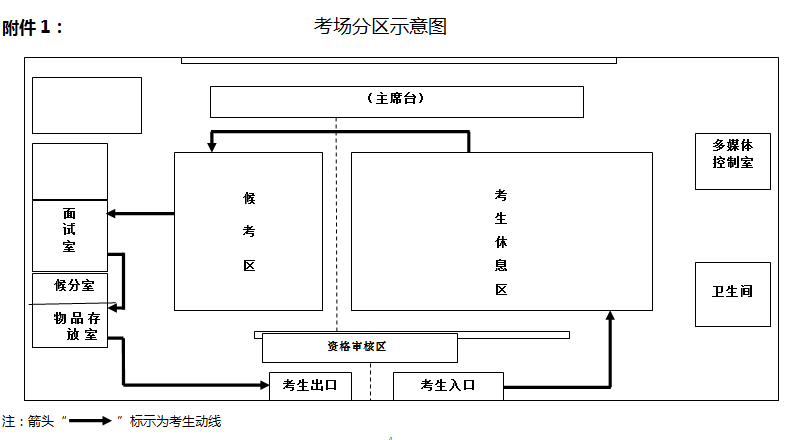 3.考生入场后根据考签,按考场顺序:休息区→候考区→面试室→候分室参考。入场后不得高声喧哗,不得做无关考试相关事宜,自觉维护考场秩序,如有如有违反考场纪律不改正者取消其考试资格。