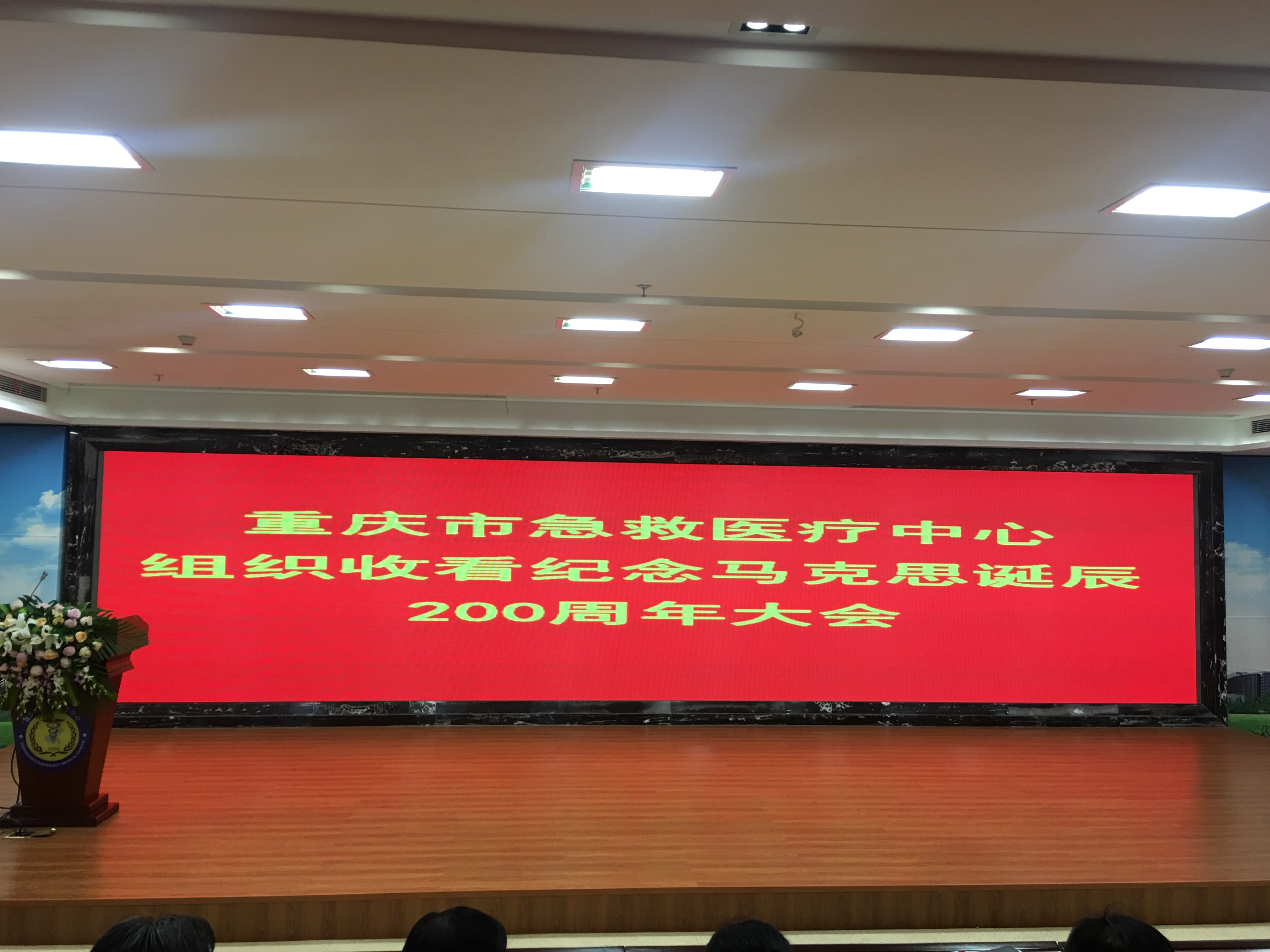 5月4日上午10点,纪念马克思诞辰200周年大会在北京人民大会堂隆重召开,缅怀马克思的伟大人格和历史功绩,重温马克思的崇高精神和光辉思想。重庆市急救医疗中心在学术报告厅集中组织收看实况直播,院领导,各科室主任、护士长,各党支部书记及委员,团委委员及团支部书记,职工代表共约150余人集中收看。