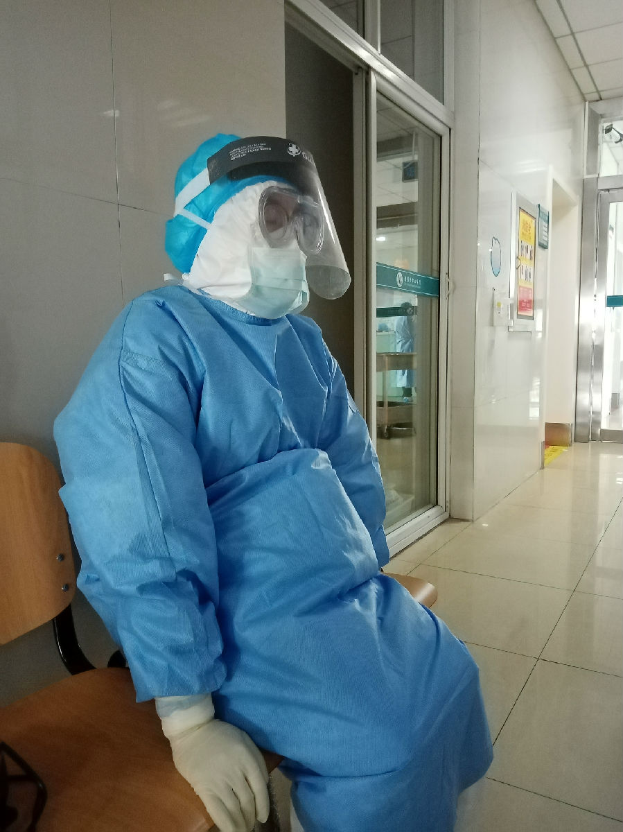 累了就在通道的板凳上稍微调整一下,又继续战斗。从早上08:00到15:30,我们坚持了七个半小时,这时候确实已经体力不支了,交完班,脱下防护服,洗完澡已17:00,才想起我们还没有吃午饭,回到宿舍吃了热腾腾的泡面,简直是大写的满足!