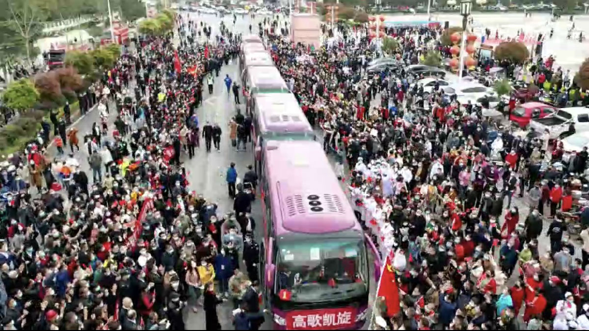 和当地医护人员道别、与送别市民拥抱、向所有后勤保障人员致谢,我们的医疗队队员们用真挚的回应,感谢着孝感市民的厚爱,全体医疗队队员们和当地群众一起,分享着胜利的喜悦!