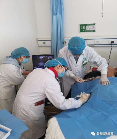 近日,昌都市人民医院内一科收治了一名病情严重的老年患者,该患者肝硬化病史5年,本次因腹胀、腹痛15天入院,结合病史、症状、体征及相关检查后,确诊“乙肝肝硬化失代偿期伴大量腹腔积液”,需立即行腹腔积液穿刺引流,但患者病情严重、配合欠佳,腹壁脂肪肥厚,多次行腹腔穿刺术未成功,后行超声定位穿刺也未成功。患者腹胀、腹痛症状无法缓解,痛苦不堪。为尽快解除患者病痛,内一科杨德雨主任紧急联系功能科刘姝妮副主任(重庆市急救医疗中心援藏医务工作者)进行会诊,综合评估患者病情和特点,制定详细的治疗预案,与患者及家属进行了充分的沟通交流,决定采用超声实时引导下腹腔穿刺置管术。