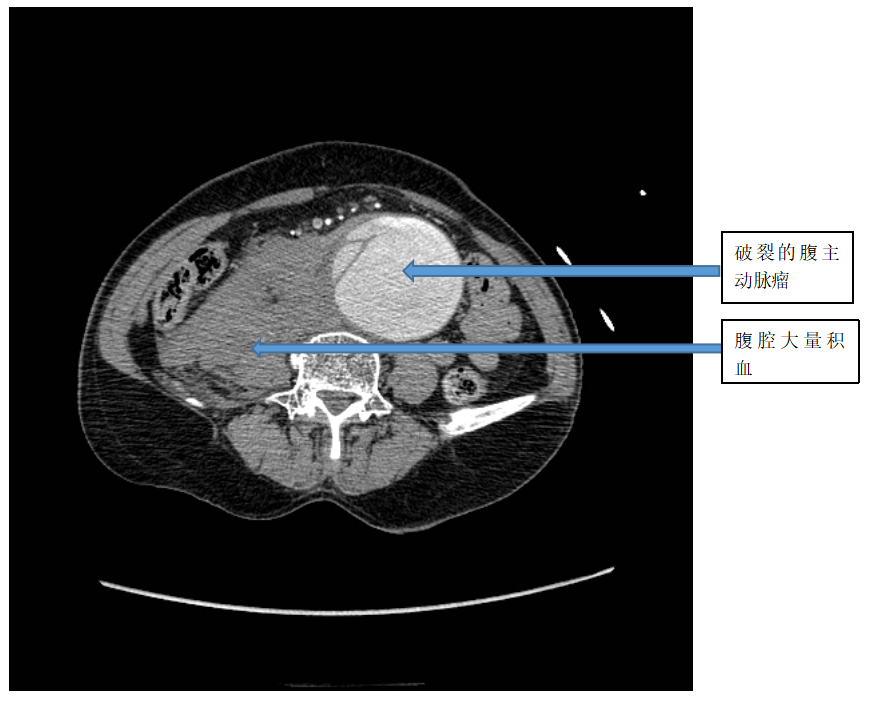 近日一位老年女性患者,因“突发腹痛2小时”入我院急诊科。CT提示腹主动脉破裂,腹腔大量积血。