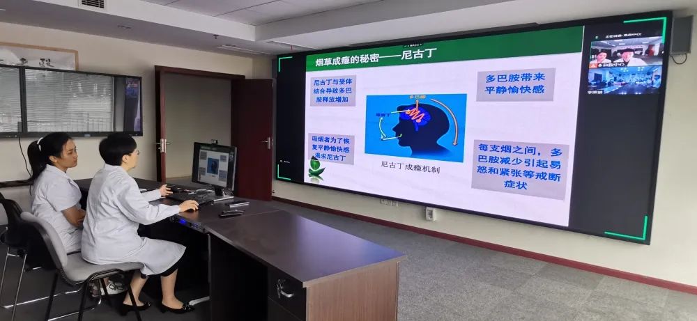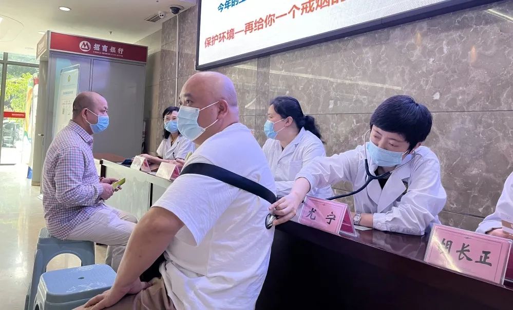 医院呼吸内科、感染与疾病预防控制科、团委在医院门诊大厅开展义诊活动,对来院人员一对一讲解烟草危害、公共场所不吸烟、坚决抵制二手烟、科学戒烟方法等内容,建立“你”就是你的健康第一责任人意识。同时,充分利用线上多媒体,以电视短视频、微信公众号、滚动电子屏等多渠道广泛宣传控烟法规和控烟知识。