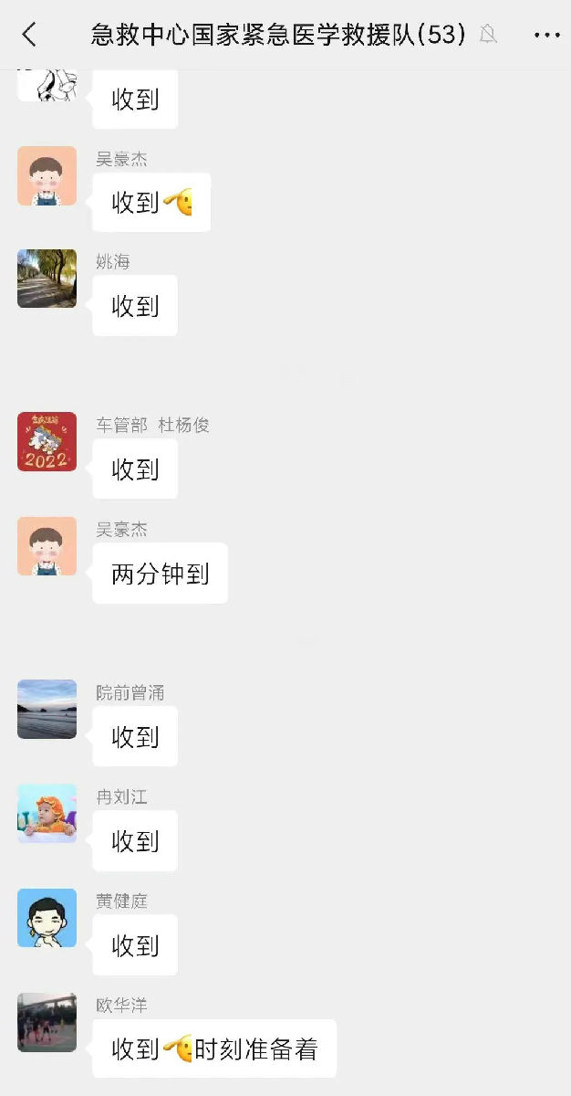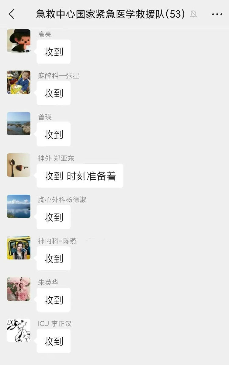 市急救医疗中心应急办接到指令后,黄志刚主任通过紧急医学队微信群第一时间发布备勤指令,队员迅速响应。