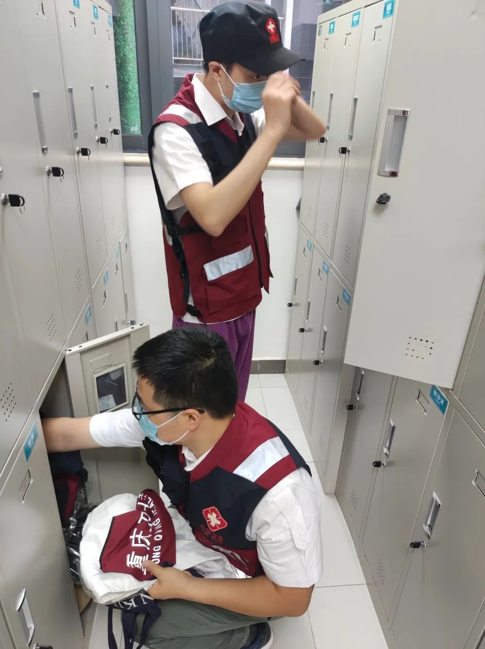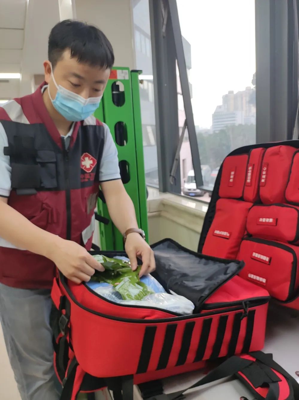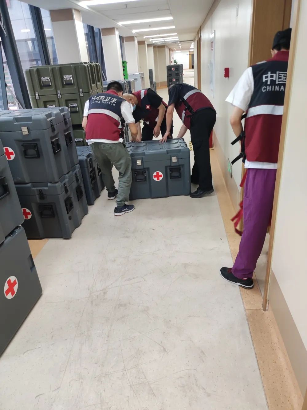 各岗位队员接到命令,第一时间响应,快速到卫生应急库房清点物资,检查应急背囊、箱组化装备,待命出发。