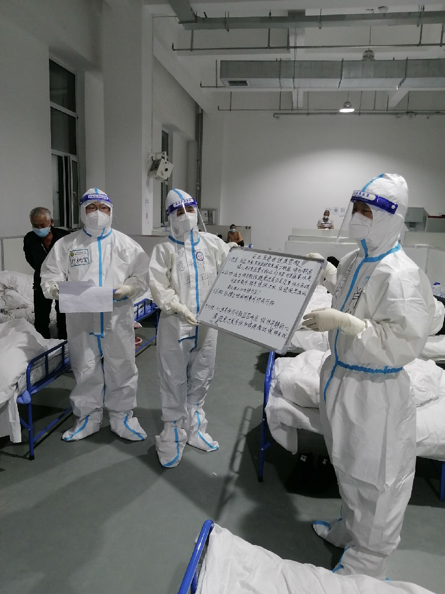4月15日,在医疗队与病人的共同努力下,奢岭方舱医院内越来越多的病人核酸检测结果为阴性,越来越多的病人符合出院标准。在医疗队与长春指挥部沟通后,为该类病人正式开启了出院通道。