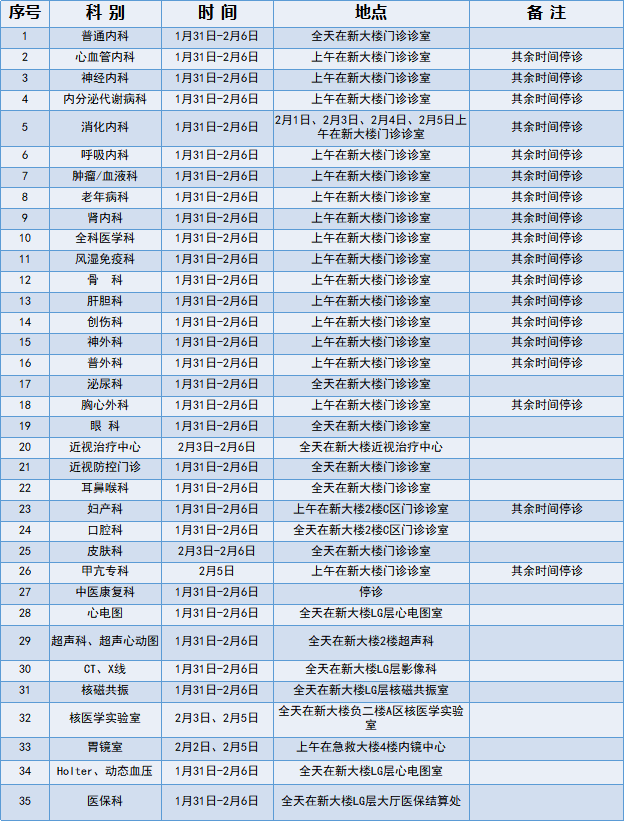 最后,附上医院节日期间门诊安排,祝市民朋友们新春愉快!平安健康!