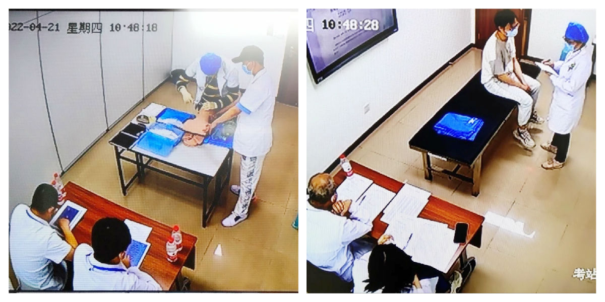 比赛采用OSCE多站形式按年级、分专业设置。其中,住培一、二年级均设置有3站,包括辅助检查结果判读、急救技能和专项技能站;住培三年级设置有5站,包括辅助检查结果判读、急救技能、专项技能、病史采集与体格检查及医疗文书书写站。每个赛站均有两位评委共同执考,并安排有引导、物品管理等工作人员。其中病史采集与体格检查赛站采用标准化病人(SP),使比赛内容更贴合临床情境,更准确更全面地考察学员理论知识和临床实践相结合的能力。
