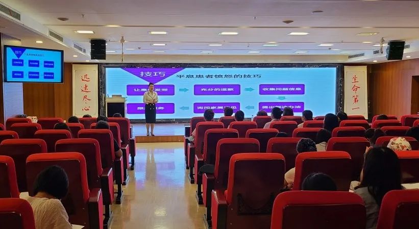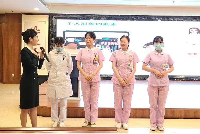 本次培训分为两个环节,礼仪培训师刘家利以服务之“心”为主题,从服务意识、服务心态、沟通技巧三方面深入浅出地为全院护士讲解了服务的重要性,恰当准确的例子、优美标准的动作、有趣的互动使得现场气氛热烈,掌声不断。