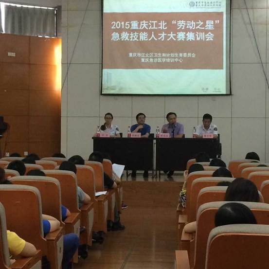 2015年8月25日-27日,我们重庆急诊医学培训中心,在分部的多功能学术会议厅,举办了为期三天的江北区“劳动之星”急救技能大赛集训。江北区卫计委何耀东副主任、我院都定元副院长、院前急救部蔡平军主任、培训部王玉副主任等领导出席了此次集训的开幕式并讲话。参加此次集训的人员,为江北区辖区范围内的28家医院所选派的精英队员,包括各单位领导共计150余人。