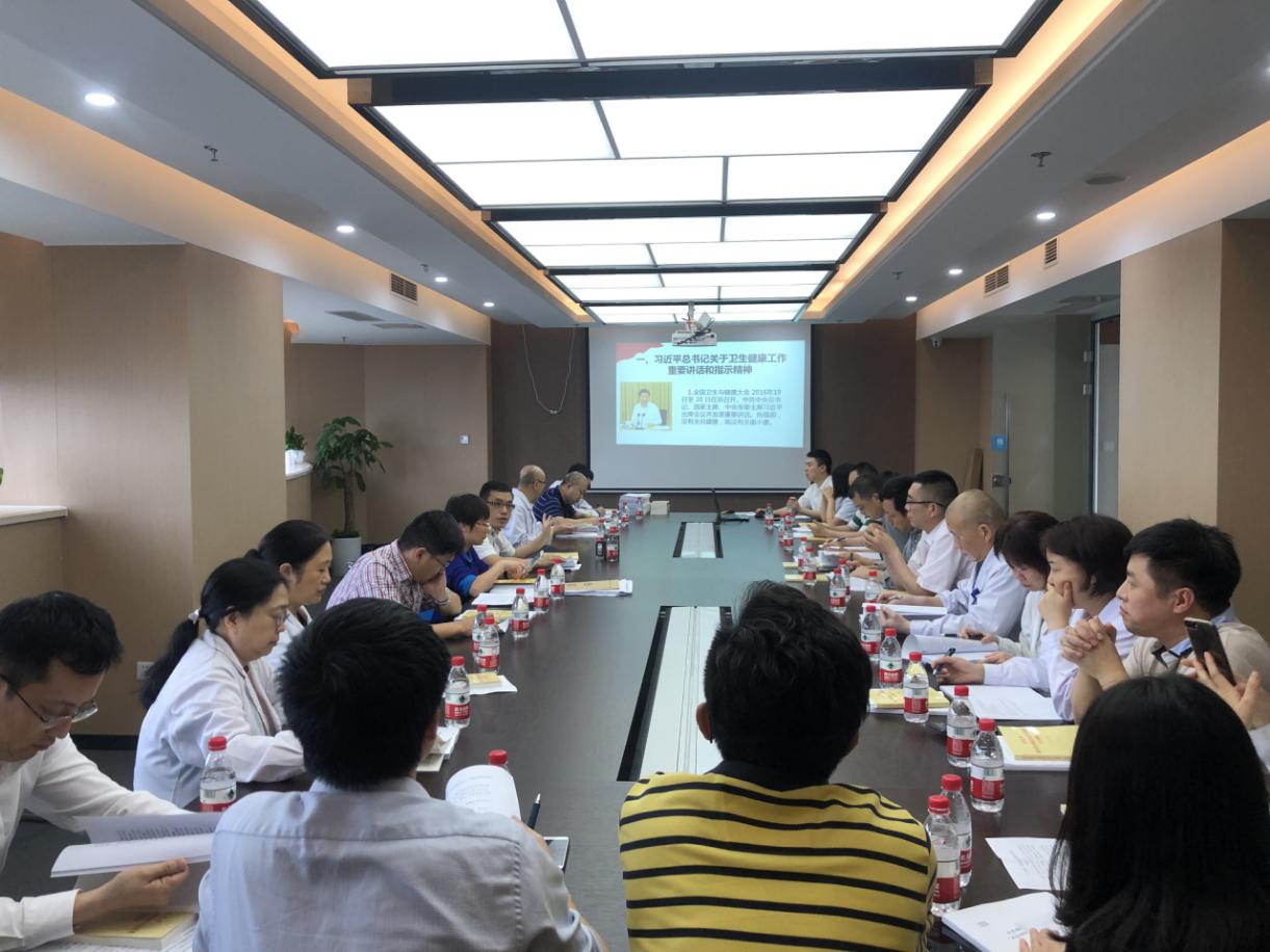 会上,郭进军副院长领学了习近平总书记2016年全国卫生与健康大会上的重要讲话和指示精神和总书记最新重要讲话。郭院长强调作为医务工作者,要牢固树立没有全民健康,就没有全面小康的观点,继续弘扬“敬佑生命、救死扶伤、甘于奉献、大爱无疆”的精神,坚持中国特色卫生与健康发展道路,做到全心全意为人民服务。在学习总书记最新讲话中重点学习了总书记在纪念五四运动100 周年大会上的讲话,希望各位发扬五四精神,在自己平凡的岗位上不辜负党的期望、人民期待、民族重托,不辜负我们这个伟大时代。