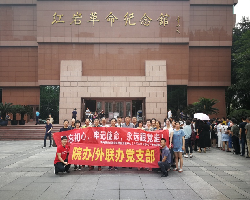 通过实地参观感受初心使命,增强主题教育感染力。院办/外联办党支部和渝中区精神卫生中心党支部结合主题党日活动,组织支部党员走进红岩革命纪念馆,开展革命传统教育活动。党员在现场重温入党誓词,学习“红岩精神”,学习老一辈无产阶级革命家、共产党人和革命志士的崇高思想境界、坚定理想信念、巨大人格力量和浩然革命正气,弘扬爱国主义精神,牢记革命历史,激发广大党员干事创业的积极性、主动性和创造性。