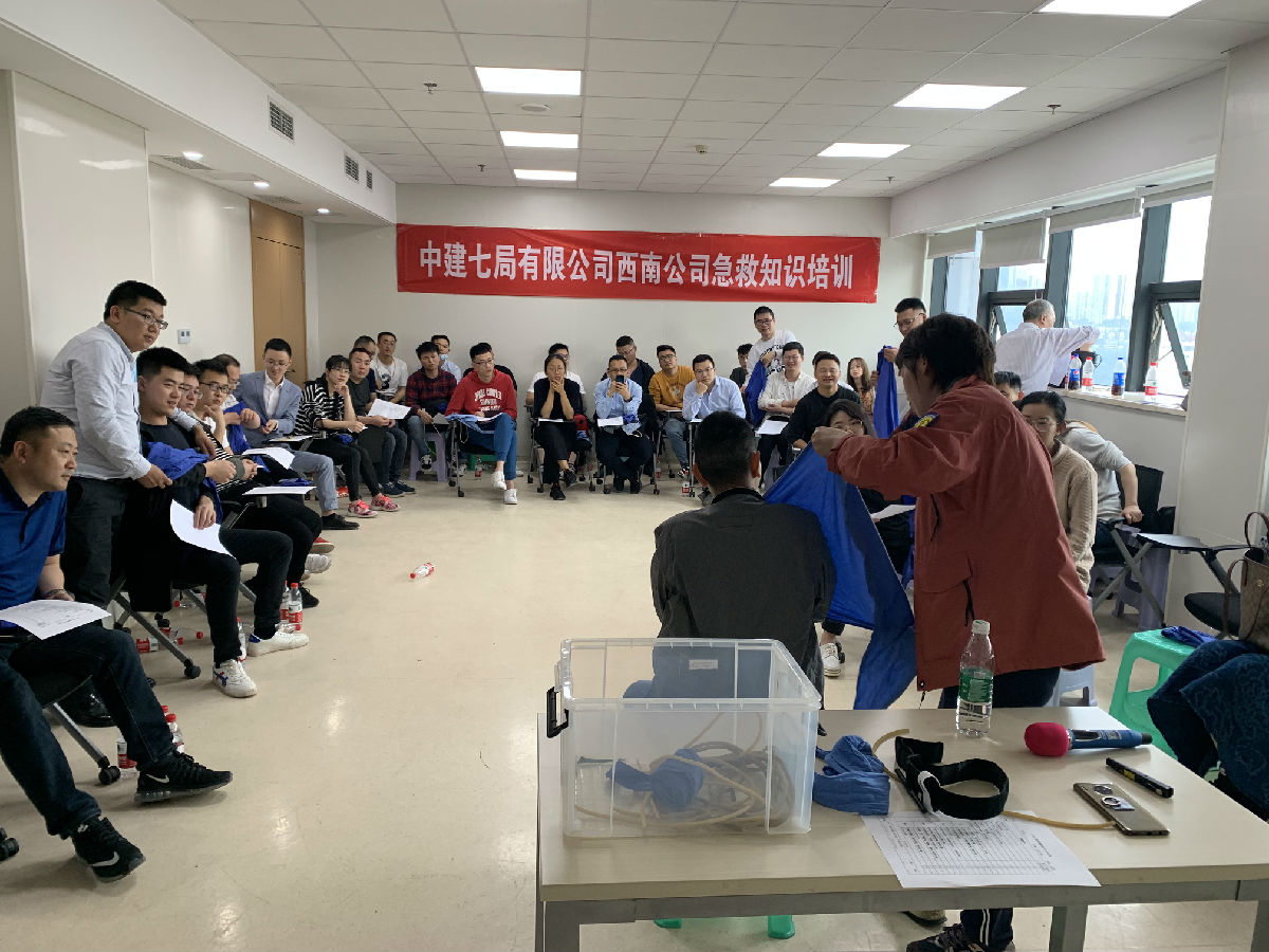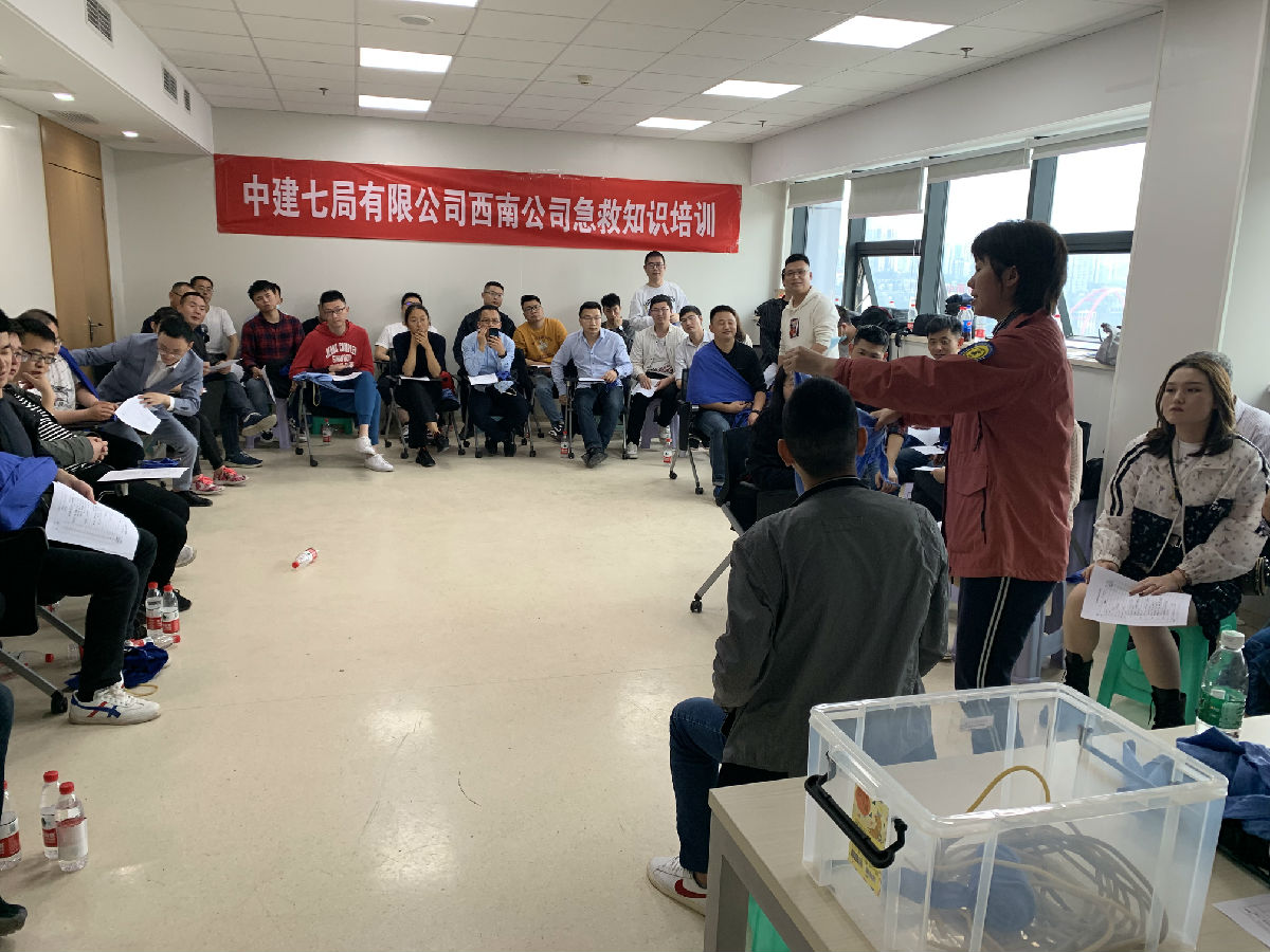 2021年4月22日,重庆市急救医疗中心培训中心游荣莉、孙超2名老师为中建七局员工进行应急知识及技能培训,参与当天培训的有51人。本次培训分为三个部分:分别是理论讲解、实操训练和技能考核。上午9点游荣莉老师讲解了卫生应急基本知识、正确拨打“120”急救电话、基本诊断技能、心肺复苏术,紧接着就是实操训练,在实操训练中学员们好学、好问、好动,通过两个小时的实操训练学员们能基本掌握心肺复苏这项技能。下午14:00孙超老师给予进行创伤急救知识的理论讲解,包括止血、包扎、固定与搬运,老师在讲解过程中融入生活中的案列,学员们受益匪浅。