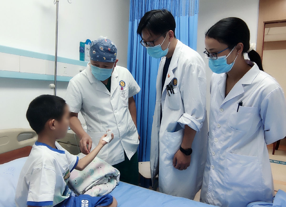 经摄片和体格检查,医生诊断出小罗的食指、中指均有并指畸形,具备手术指征。李伟带领整形外科主治医师陆洋、江灵等为孩子制定手术方案。医疗团队用时近2个小时,成功开展并指畸形分离手术。