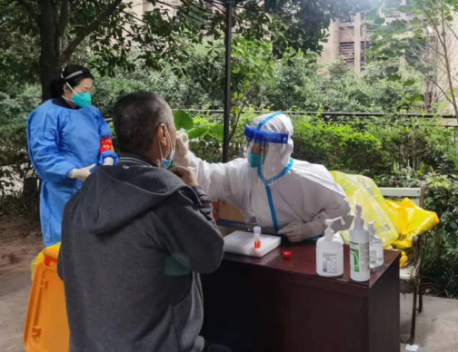 虽然早已习惯平时日常诊疗工作的繁忙和需要经常熬夜的作息时间,可当亲自参与到抗疫战争时,才知道和平时并不一样,一天转战几个社区进行核酸采样,防护服里的衣服干了湿、湿了又干,采集核酸的规模从几百到几千,精神状态从饱满到疲惫再到麻木。我知道,这场疫情歼灭战任务艰巨,但我们没有害怕,我和我的小伙伴们站在前、冲在前、干在前,投身到一线去,到任务最繁重的地方去,到人民群众最需要的地方去。