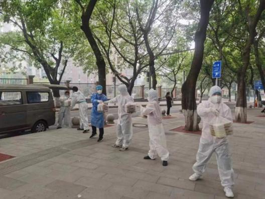 随着社会面阳性病例逐渐减少,我们的核酸采集任务也宣告结束。医院的同事们还在白班夜班连轴转的守护患者,我也不能停歇,随后接下了为医院同事、病人及其家属送餐的任务。厚重的防护服掩盖不住我的热情,我身披“白衣”,全力以赴打赢疫情歼灭战。