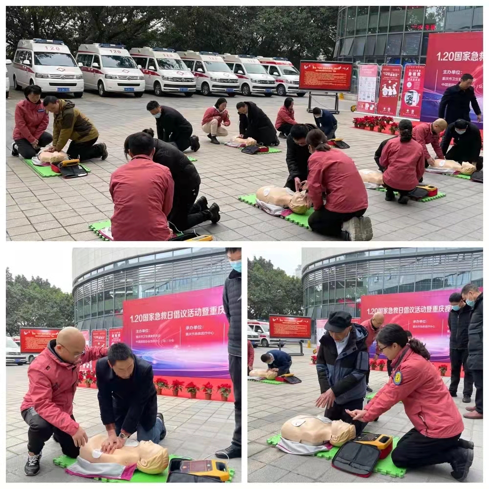 公众急救知识及技能培训科普活动——1.20国家急救日倡议活动急救培训 2022-04-07临床技能培训中心 公众急救知识及技能培训科普活动——1.20国家急救日倡议活动急救培训 时 间:2022年1月20日 星期五参加人员:董荔、费夕丰、王玉、游荣莉、孙超、程瑞、游向果培训人数:60人培训项目:心肺复苏、AED的使用 重庆急诊医学培训中心
