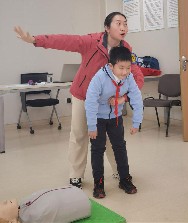 (老师给孩子们进行急救技能演示)