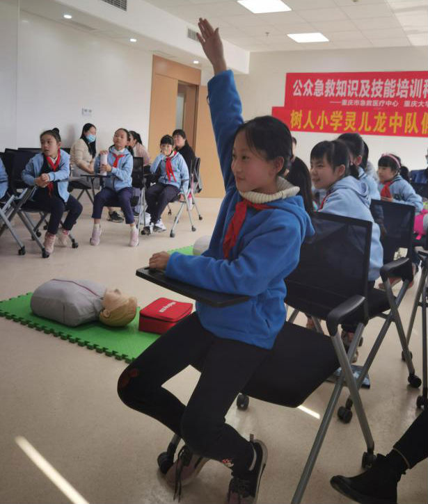 2月19日,也就是2021年春假后的第二个工作日,来自重庆市树人小学的11位8-9岁的小朋友和他们的家长们,携手来到了重庆市急救医疗中心的临床技能培训中心,与这里的公众应急培训的老师们开展了一期别开生面的“大手牵小手 一起学急救”的“安全伞”亲子急救科普培训活动。