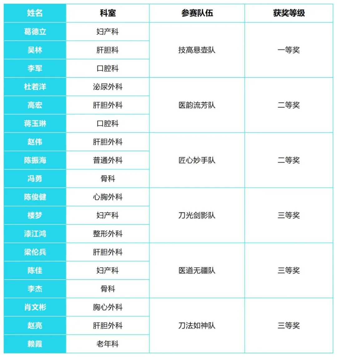 外科技能比赛获奖名单: