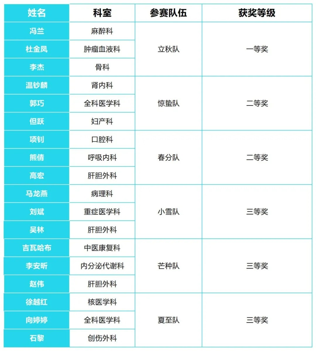 临床知识竞赛获奖名单: